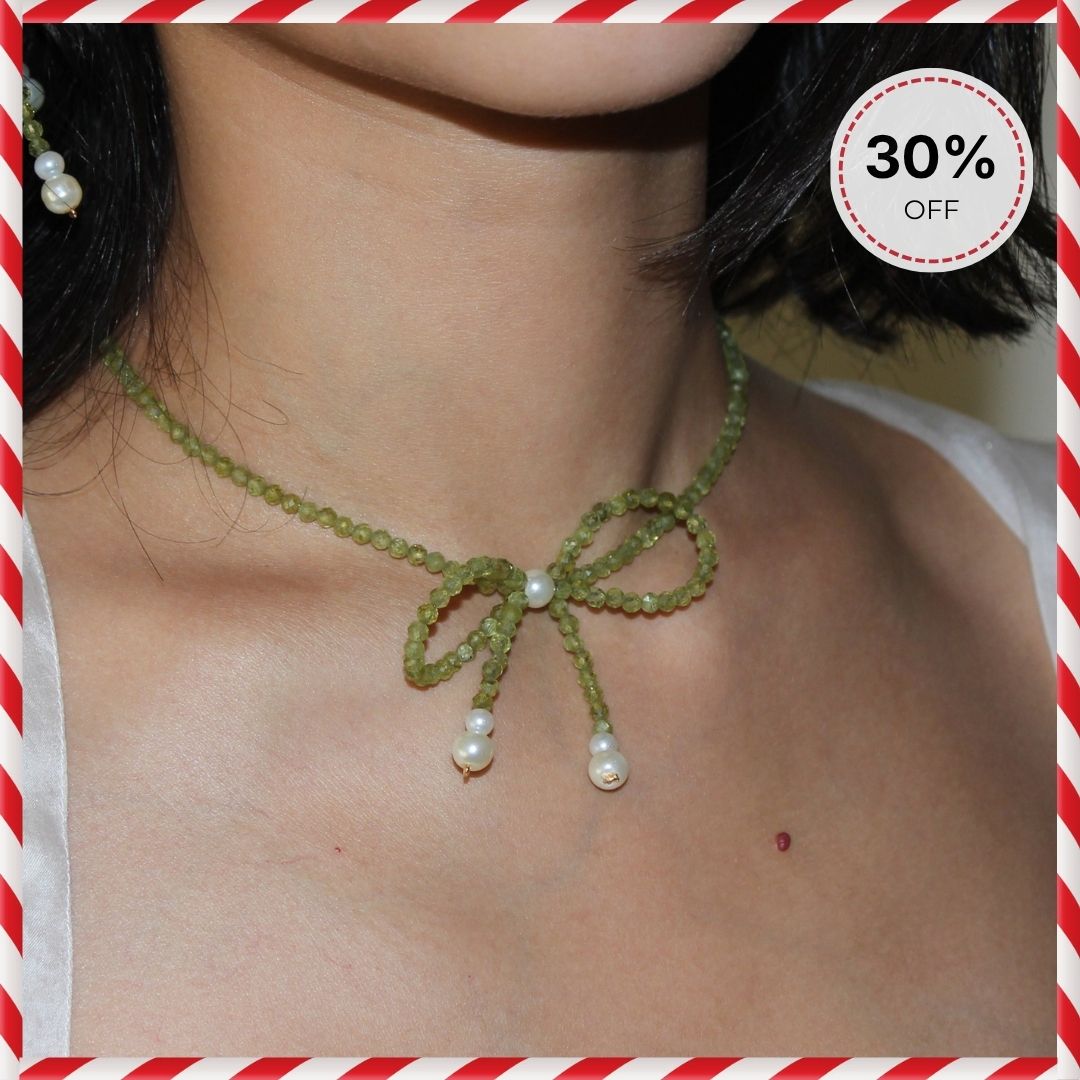 Bow necklace in Peridot gemstones