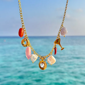 18k gold-plated jewellery in brass and 92.5 sterling silver, with freshwater pearls, gemstones and signature charms.