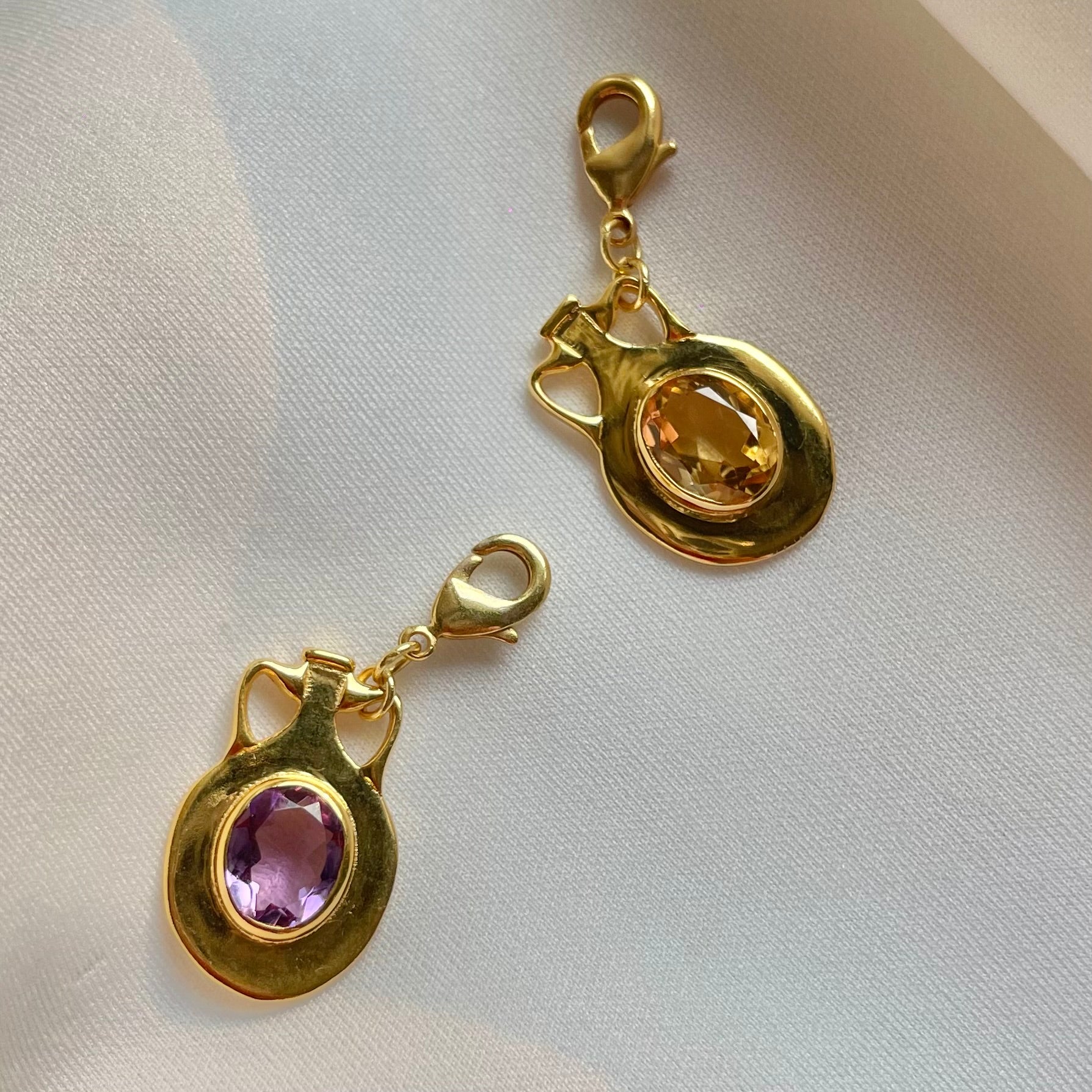 The process of our gold plating involves using a thick layer of 18 karat gold on brass as well as sterling silver base metals. The resulting pieces are then coated with an organic lacquer via an electric current. This technique helps seal the pieces for long lasting use.