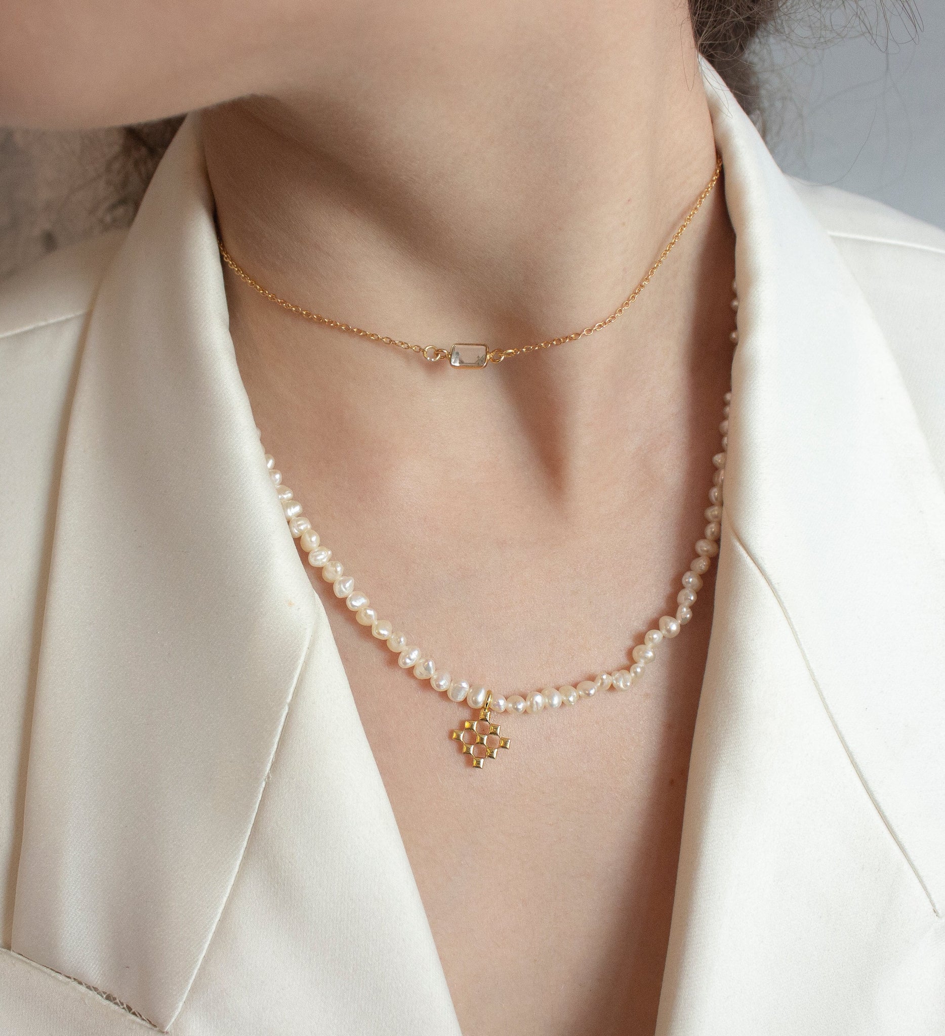 We use cultured freshwater pearls from oysters and mussels. Each piece is carefully selected. Due to their sensitive nature make sure to avoid spraying perfumes directly on to the pieces.