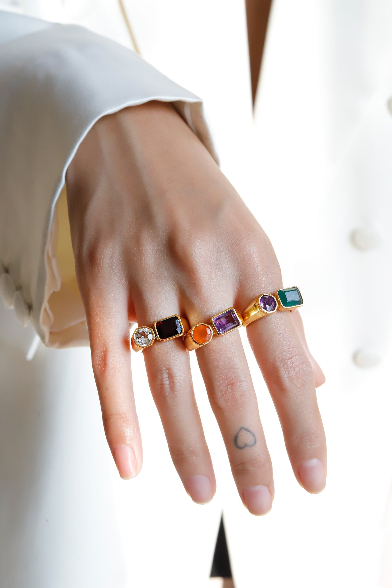 The HANNAN signature 'Fortune Teller [dangler]'  form extends to our all new gemstone rings.