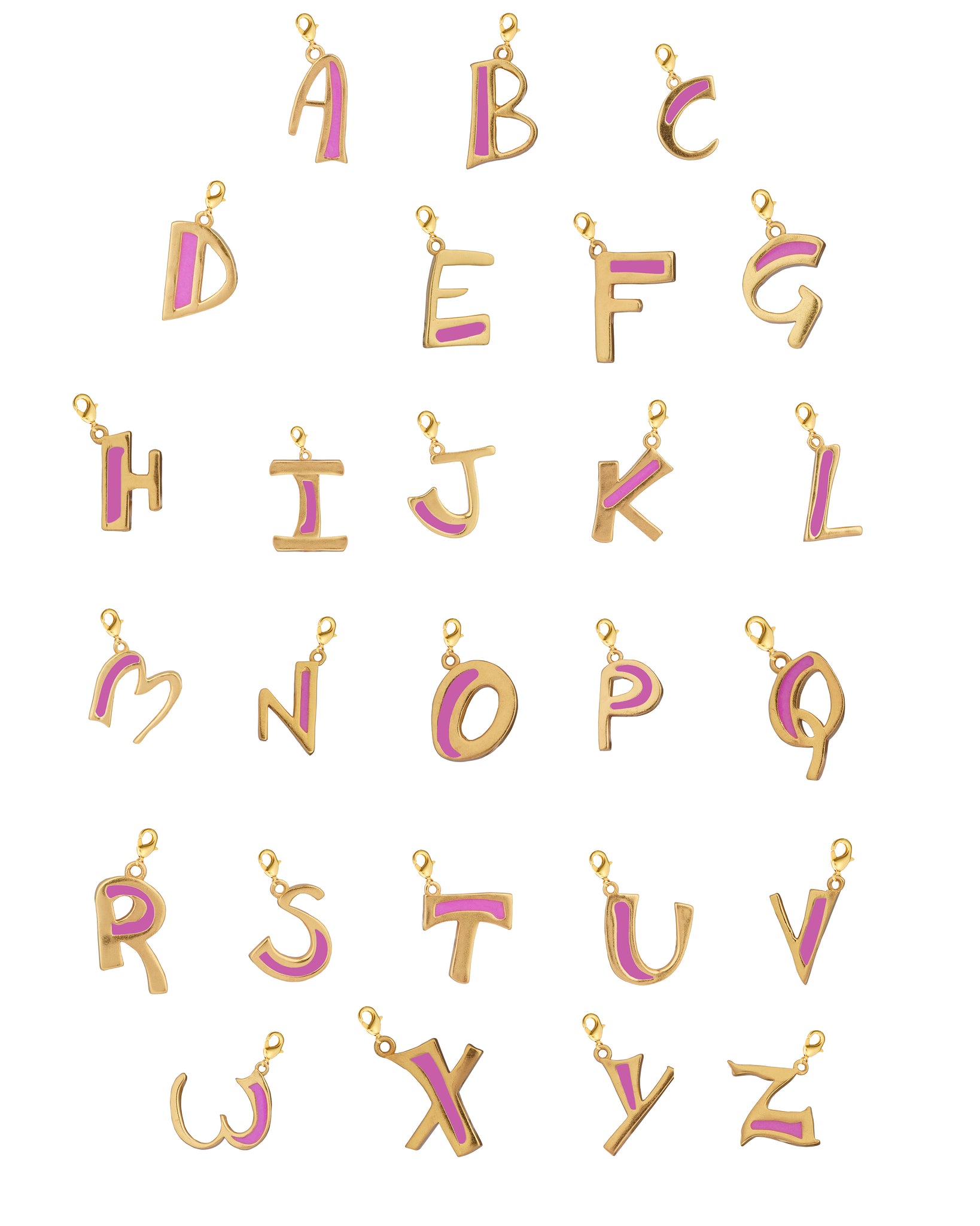 HANNAN signature handwritten letter charm with bubblegum pink enamel.