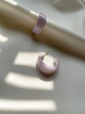 Swim-friendly thick flat hoops, lilac-white swirl.