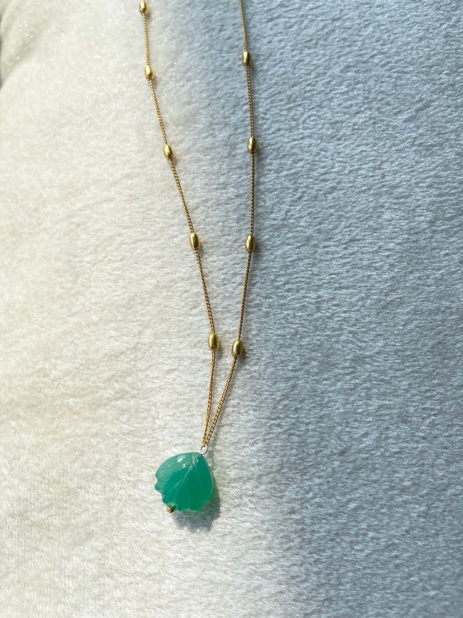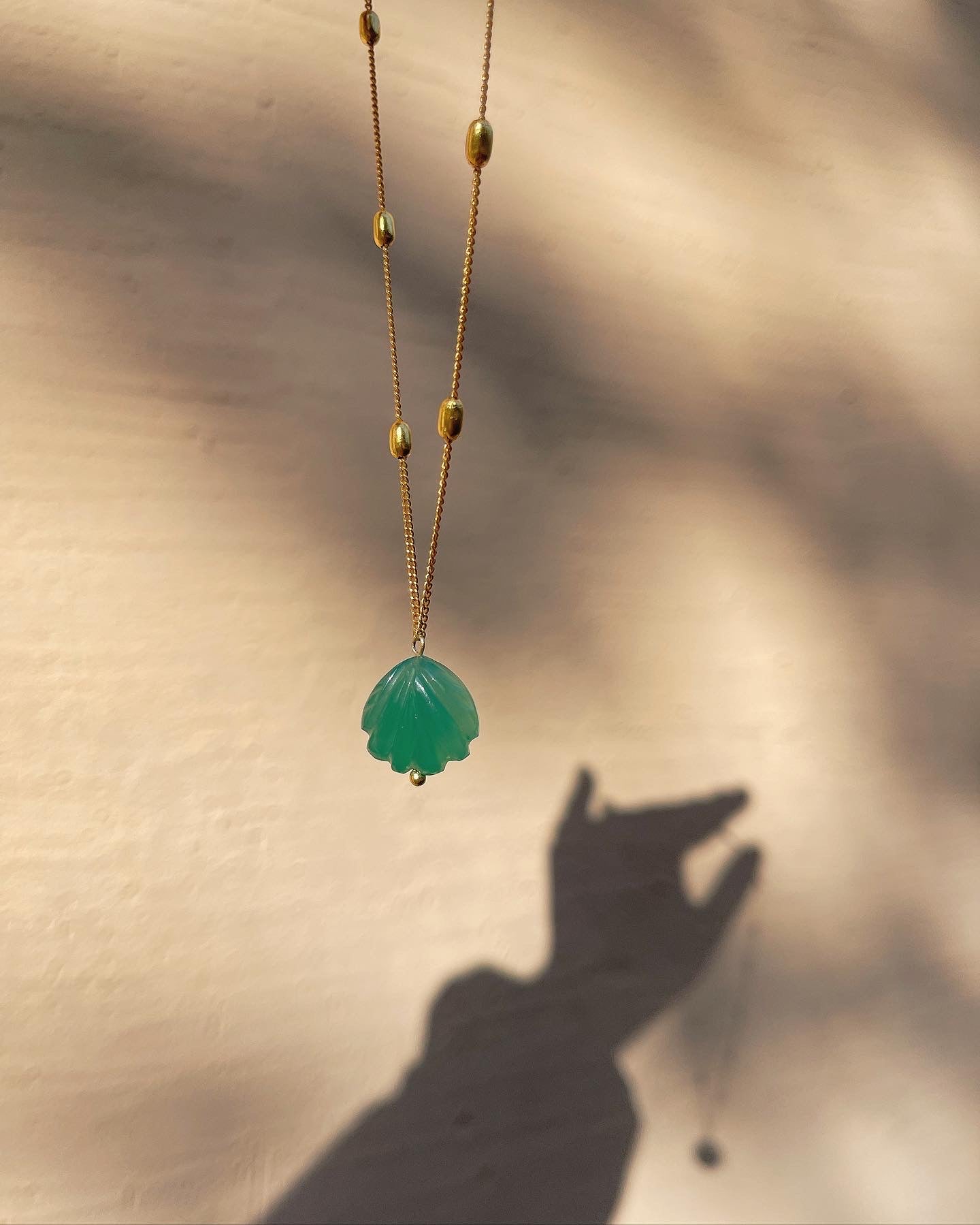 Green Onyx oyster charm on the signature ‘Grain of Truth’ chain.