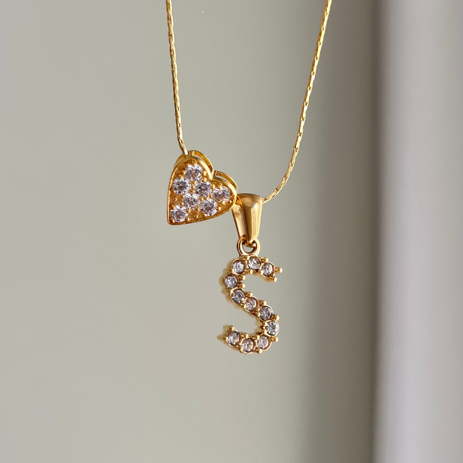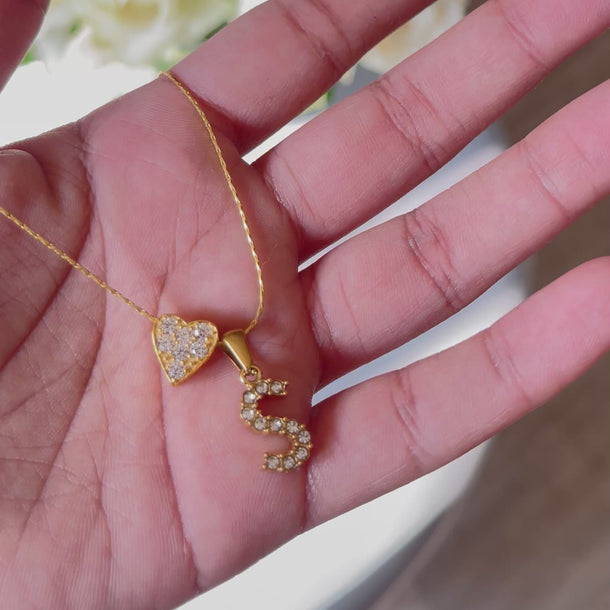 HANNAN studded letter charm with the HANNAN signature The Spark heart charm.