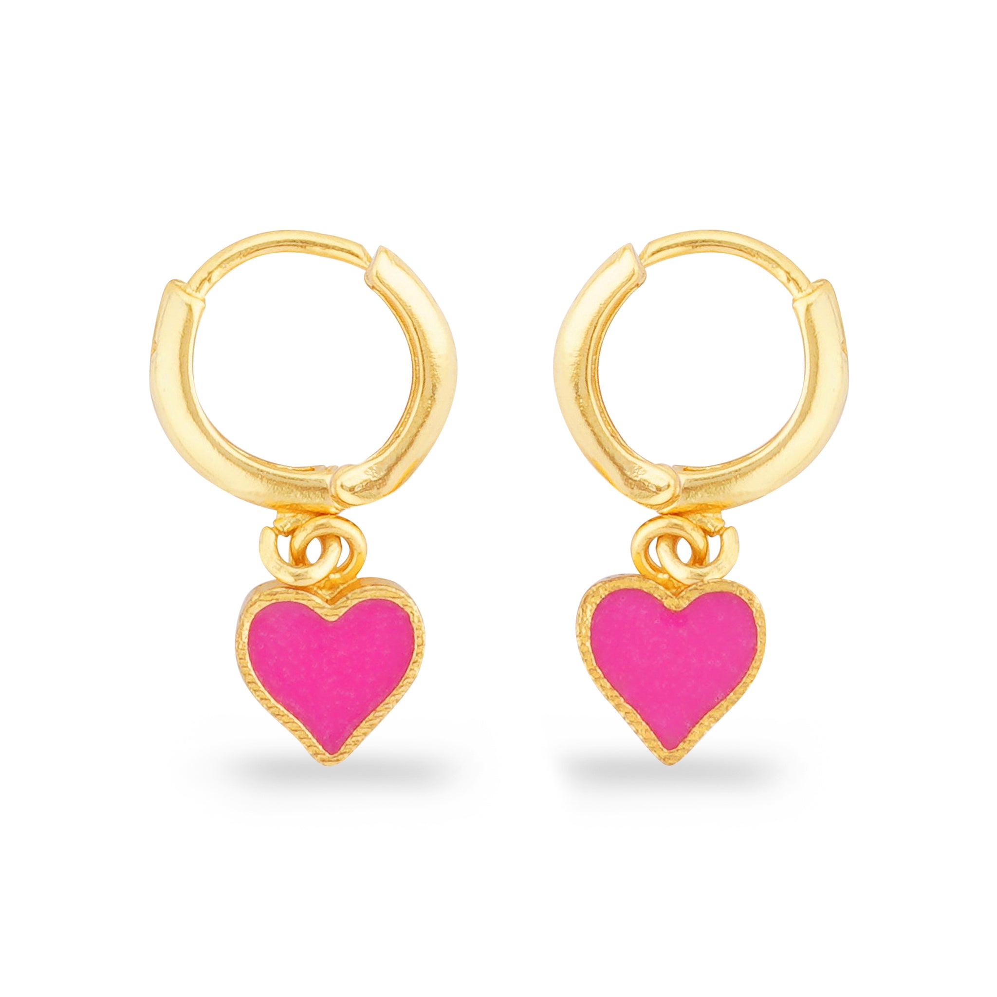 Huggie with with a teenie bit heart charm with magenta enamel.