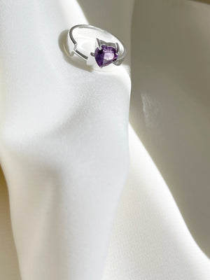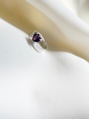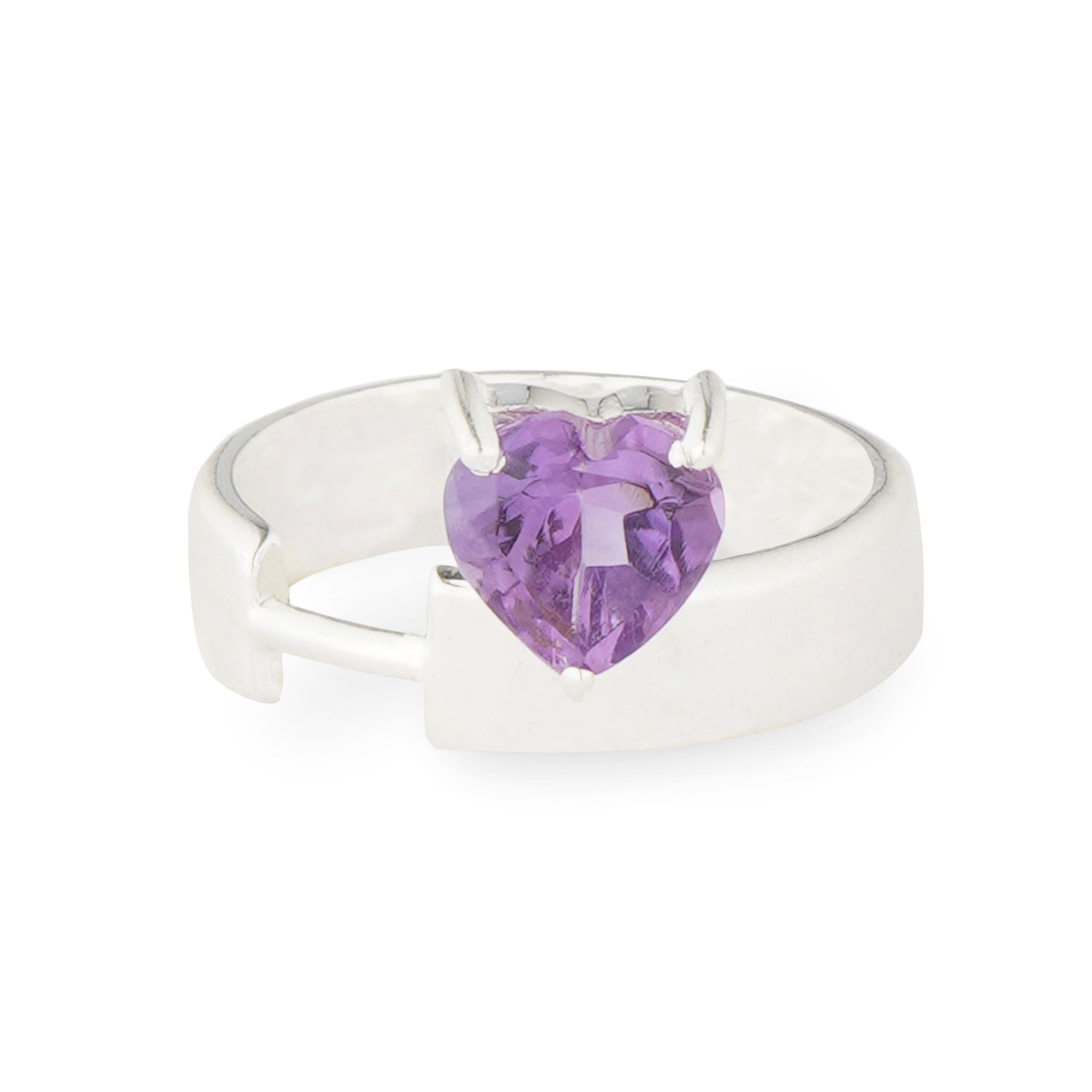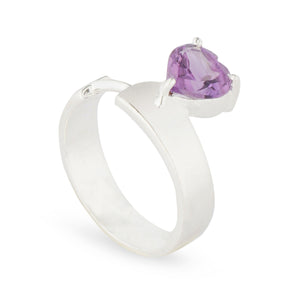 HANNAN Signature H ring with a floating amethyst stone heart charm.