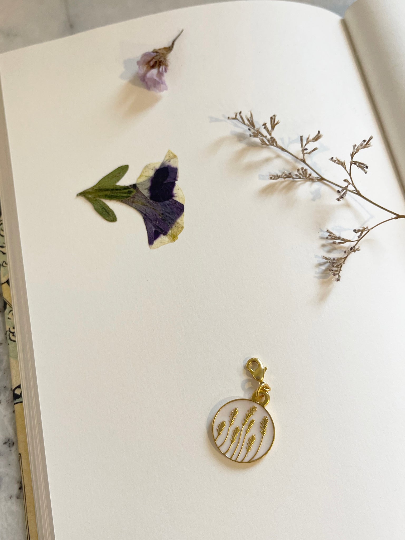 ~ .75" coin charm with a 'swaying wildflowers' scenery engraved